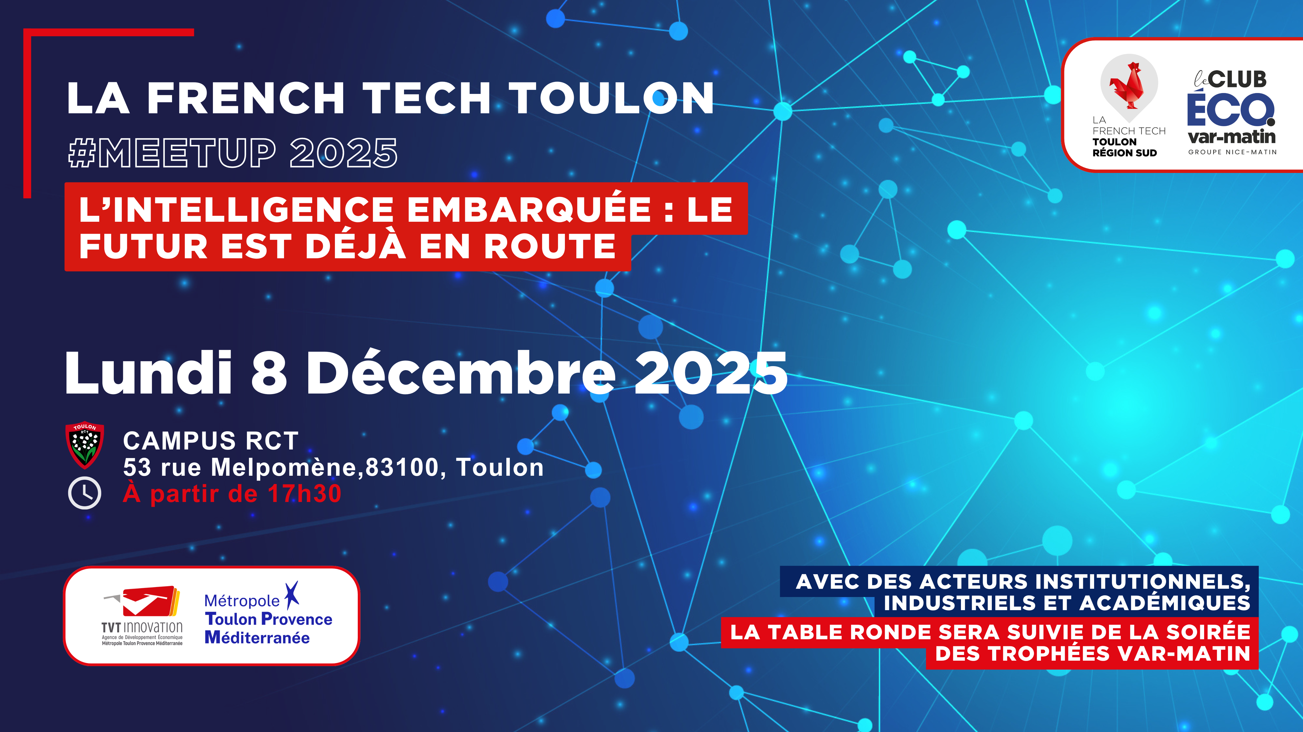 La French Tech Toulon et le Club Éco Var-Matin vous donnent rendez-vous au Campus du RCT pour une table ronde exceptionnelle sur « L’intelligence embarquée : le futur est déjà en route », un sujet au cœur des transformations technologiques et particulièrement stratégique pour notre écosystème maritime. Cet échange sera suivi, à 19h, de la Cérémonie des Trophées de Var Matin.