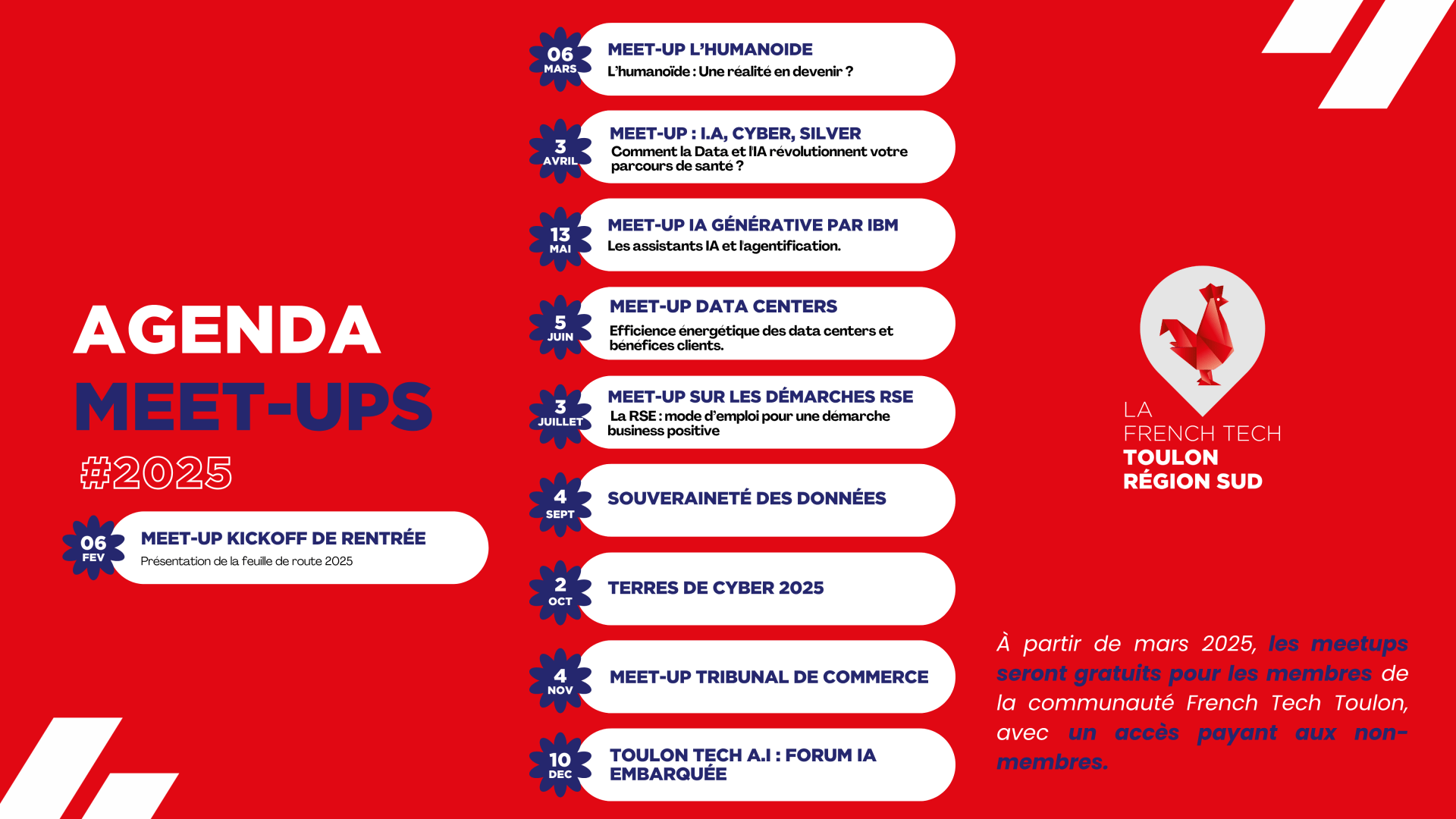 Les Meetups sont ouverts à tous et se déroulent dans des lieux emblématiques de Toulon. Consultez notre calendrier des événements pour découvrir la date et le thème du prochain Meetup.